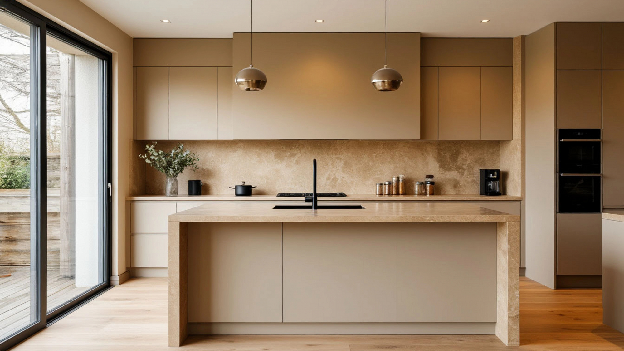 Главное впечатление от "Эвори" — это гармония. Светлый, мягкий беж, переходящий от оттенков слоновой кости до едва заметного кремового, создаёт ощущение спокойствия и пространства. Этот цвет не кричит, не требует внимания — он просто присутствует, делая всё вокруг светлее и уютнее. В нём чувствуется природное начало — песок, камень, солнечный луч на стене. Именно поэтому кухня в бежевом цвете так органично вписывается в современный интерьер: она не подчиняет себе комнату, а раскрывает её, становится её частью.