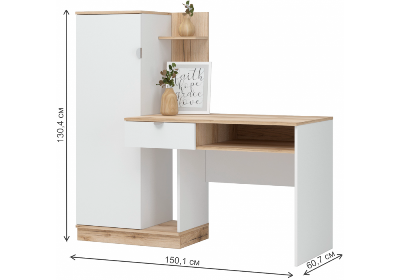 Компьютерный стол Джидда 1500 белый / дуб делано (60,7x130,4).