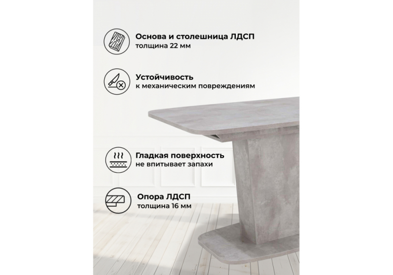 Стол деревянный раскладной Рондо-2 цемент светлый (75x75)