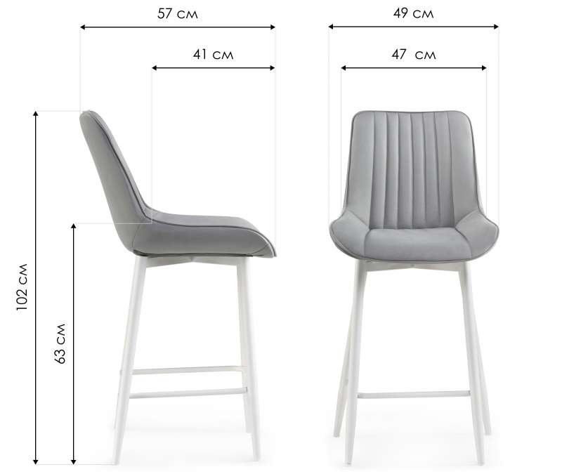 Барный стул Седа велюр светло-серый / черный (49x57x102).